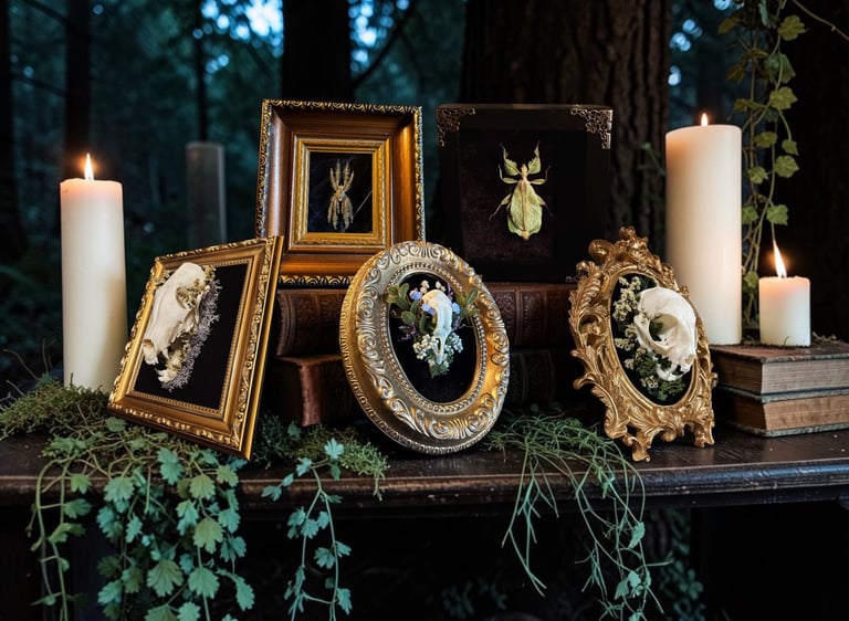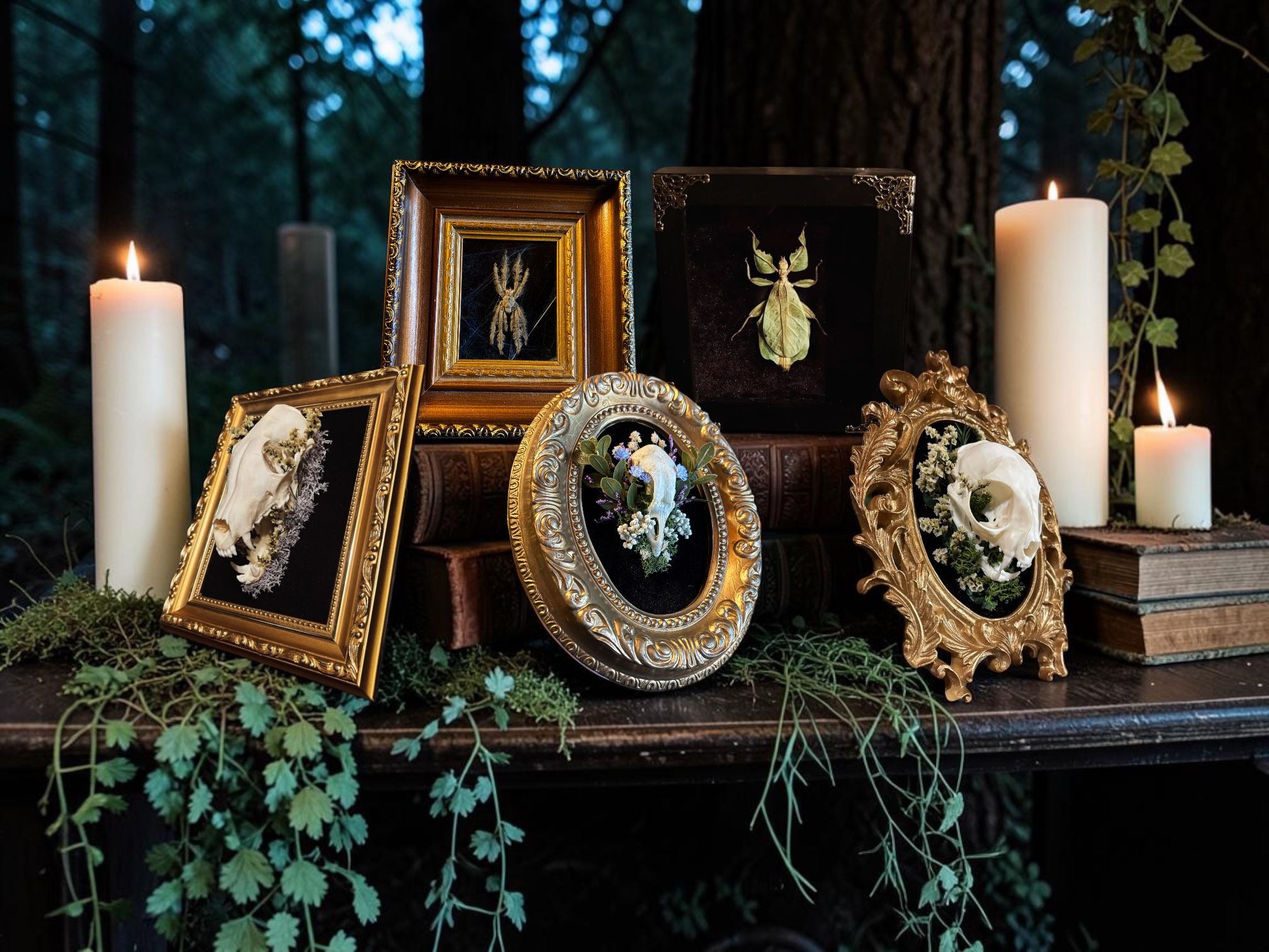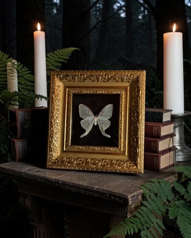 Here, shadows of the forest whisper stories through framed insects and relics reclaimed by time. Giving the beings that once were, a second life through art.